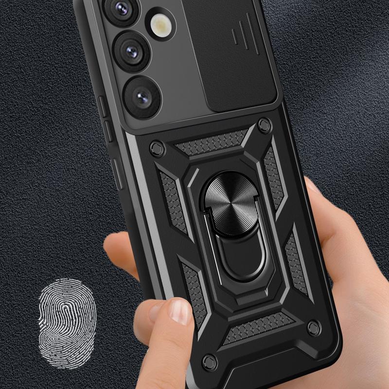- Coque hybride à anneau rotatif avec protection d'appareil photo pour Samsung Galaxy S25