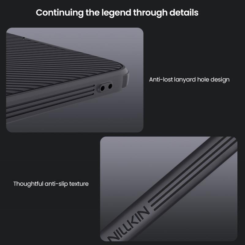 - Cet extraordinaire boîtier hybride Nillkin CamShield Prop est composé de matériaux plastiques et TPU