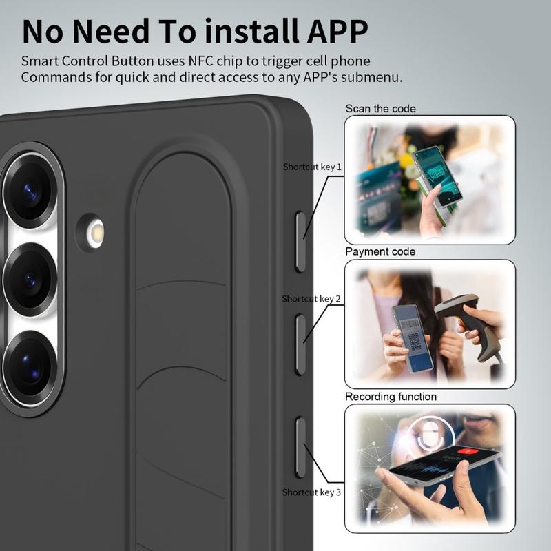 Coque hybride Smart avec prise en main pour Samsung Galaxy S24+ - Touches de raccourci personnalisables NFC, support de poignet et protection de l'appareil photo en alliage