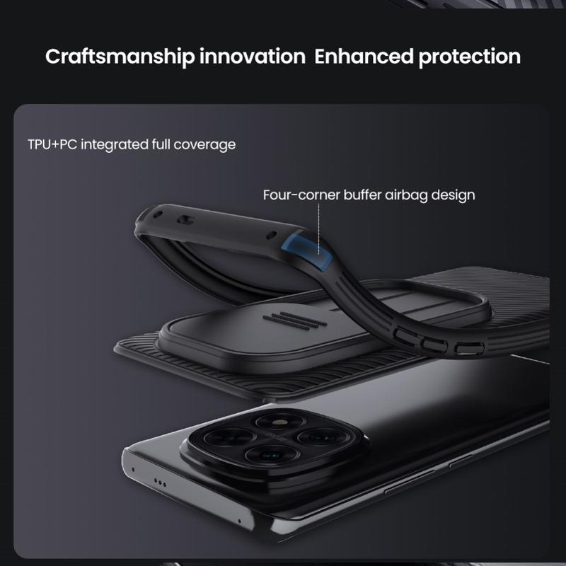 Profitez d'une intimité et d'une protection supplémentaires avec la coque hybride Nillkin CamShield Pro. Combinant du plastique rigide et du TPU, le cache de l'appareil photo évite les rayures tout en protégeant votre Xiaomi Redmi Note 14 Pro 5G, Poco X7 de l'usure quotidienne.
