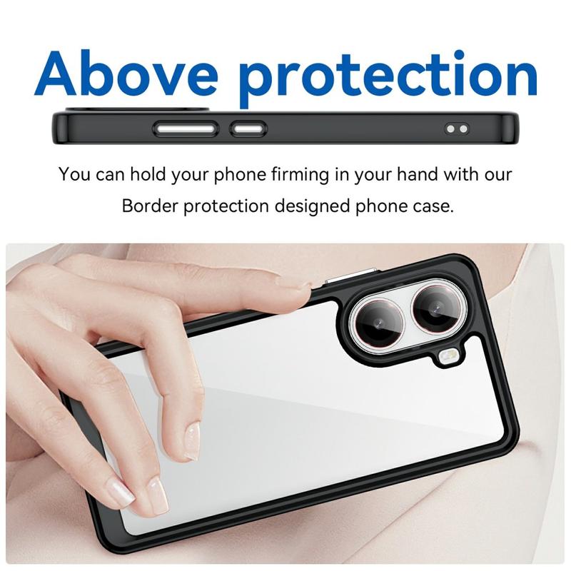 - Construction à deux matériaux - le panneau arrière en acrylique transparent avec les bords en TPU
