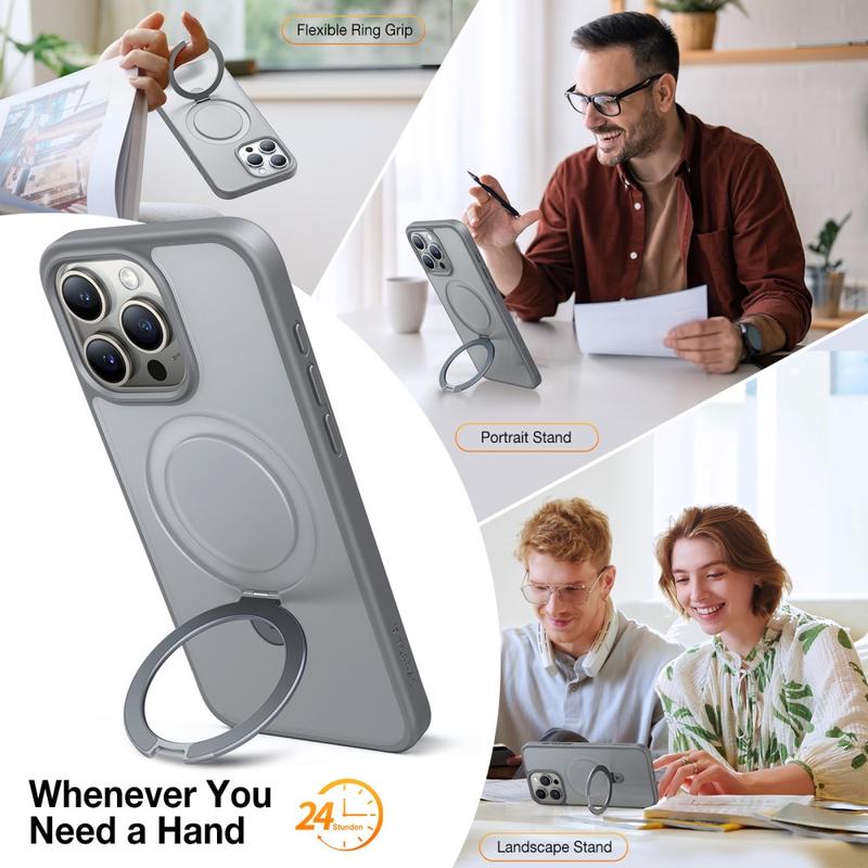 • Coque Torras Upro Ostand Matte pour iPhone 15 Pro Max - Poignée MagSafe, béquille intégrée, protection antichute