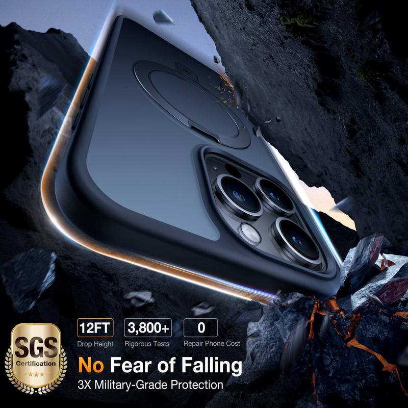 Glissez cette housse élégante sur votre iPhone 15 Pro Max et bénéficiez de trois éléments essentiels en un : un alignement MagSafe solide comme le roc, un support métallique rabattable pour un visionnage mains libres et une protection contre les chutes certifiée SGS, de qualité militaire, le tout sans sacrifier la finesse de votre poche.