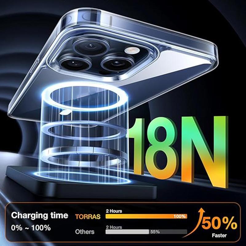 La coque TPU transparente Torras compatible MagSafe pour iPhone 15 Pro allie style, protection et fonctionnalité, ce qui en fait le choix idéal pour les utilisateurs qui souhaitent une coque fine et durable qui met en valeur le design de leur téléphone tout en offrant la commodité du MagSafe.