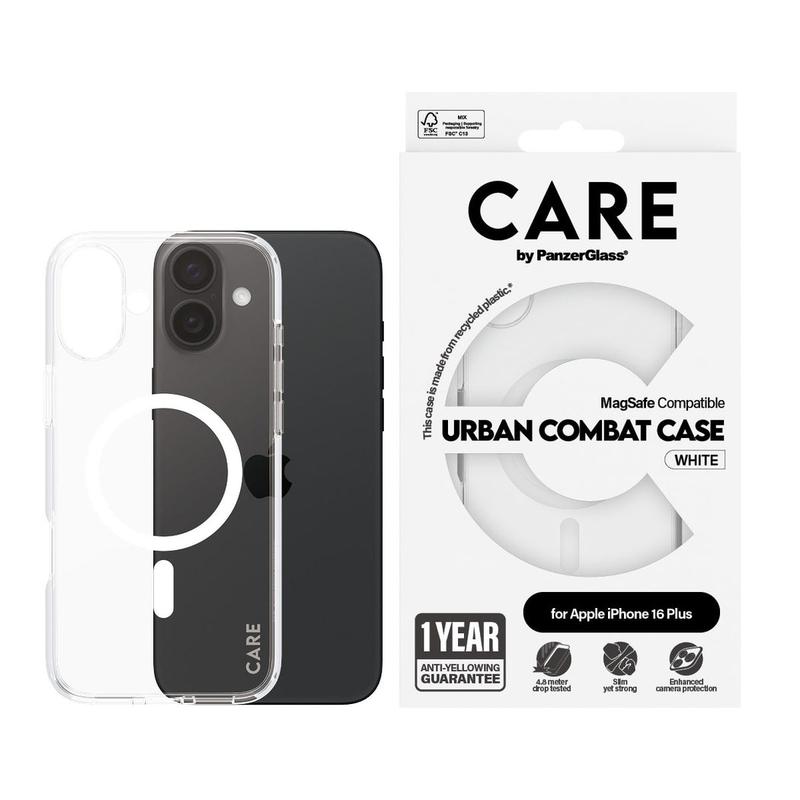 Coque Care by PanzerGlass Transparent Urban Combat pour iPhone 16 Plus - Compatible MagSafe