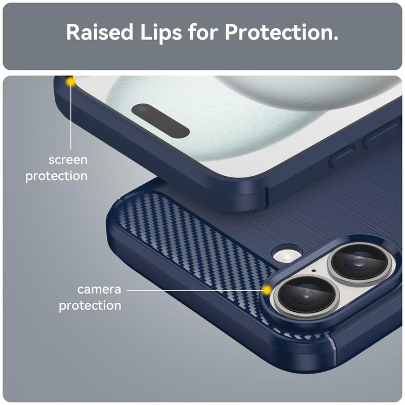 La coque en TPU brossé protège adéquatement votre iPhone 16 Plus tout en lui donnant un super style, grâce à son motif en fibre de carbone à l'arrière. La coque assure également une surchauffe lors de l'utilisation de votre iPhone 16 Plus, grâce à sa conception à dissipation thermique.