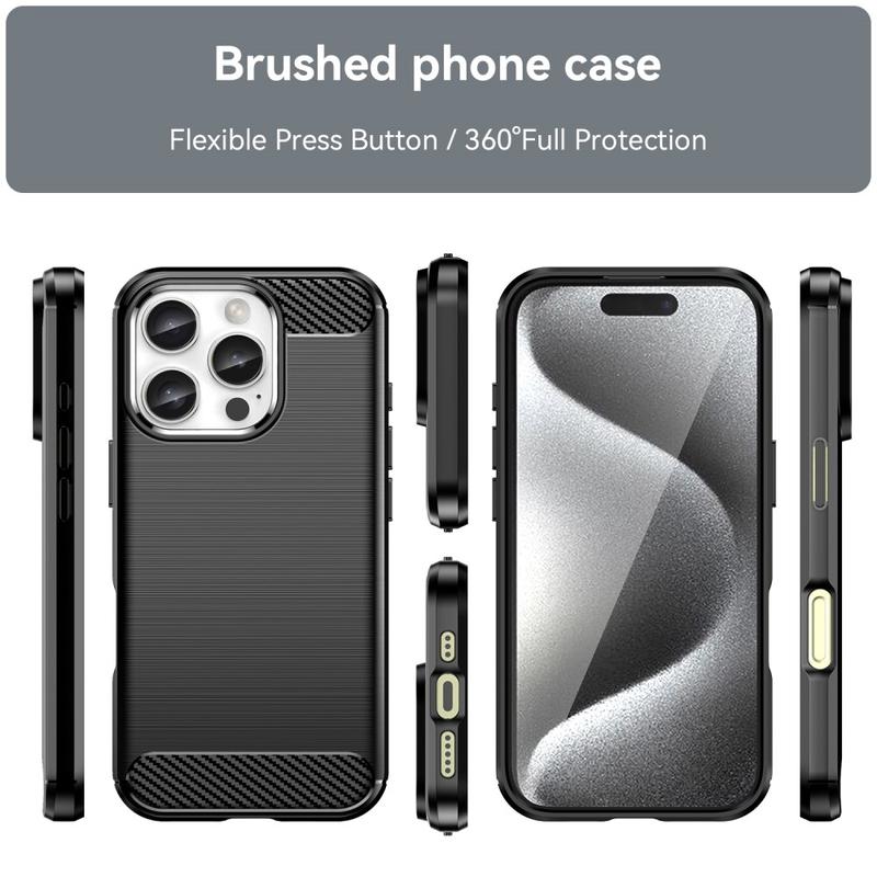 Coque en TPU Brossé pour iPhone 16 Pro Max - Fibre de Carbone