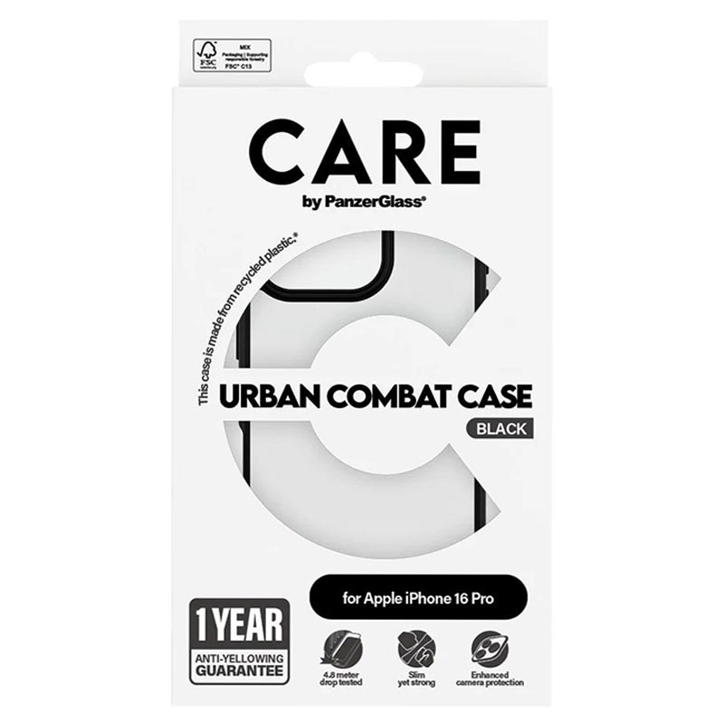 L'étui CARE by PanzerGlass Urban Combat Case offre une protection exceptionnelle tout en conservant un design épuré et élégant. Ses matériaux respectueux de l'environnement en font un choix de premier ordre pour les utilisateurs d'iPhone 16 Pro.