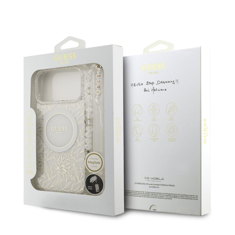 Coque avec bracelet en perles Guess IML Flowers Allover pour iPhone 17 Pro Max - Compatible MagSafe