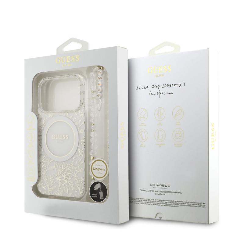 Coque avec bracelet en perles Guess IML Flowers Allover pour iPhone 17 Pro - Compatible MagSafe