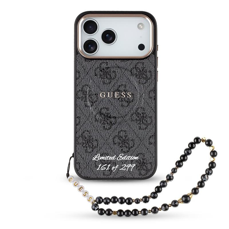 Guess 4G Strap Etui compatible MagSafe pour iPhone 17 Pro Max - Limited Edition (299 pcs) Couverture arrière numérotée avec dragonne en perles