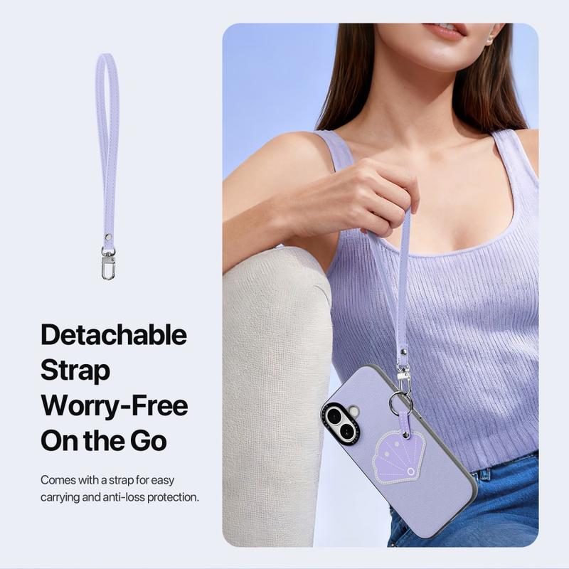 Une sangle amovible est incluse pour faciliter le transport lors des voyages, des déplacements ou des activités quotidiennes. Elle offre une sécurité supplémentaire contre la perte tout en donnant à votre iPhone 17 une touche d'accessoire à la mode.