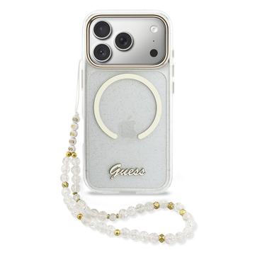 Coque MagSafe avec dragonne Guess IML Glitter Script pour iPhone 17 Pro Max - Coque arrière pailletée avec dragonne, protection PC+TPU, compatible MagSafe
