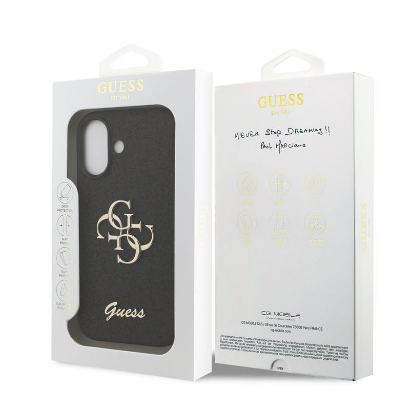 • Coque Guess Fixed Glitter 4G Metal Logo pour iPhone 17