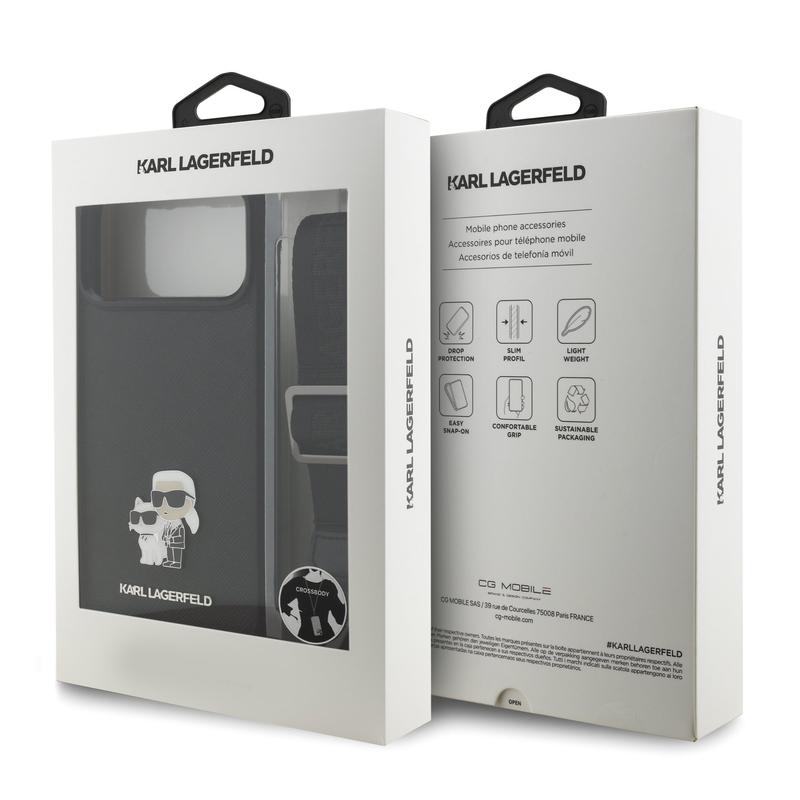 Coque Karl Lagerfeld Saffiano Crossbody Metal Karl & Choupette pour iPhone 17 Pro