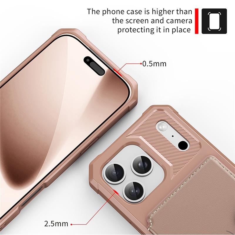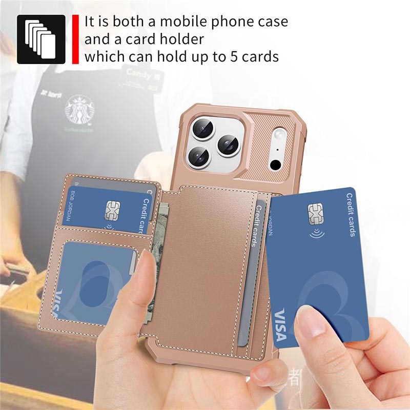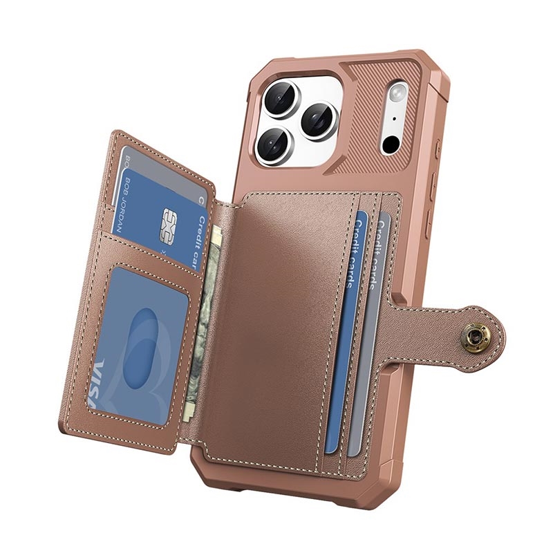 - L'étui portefeuille pour iPhone 17 Pro Max a une fermeture à bouton-pression sécurisée, un design de portefeuille et plusieurs fentes pour cartes avec une poche pour l'argent