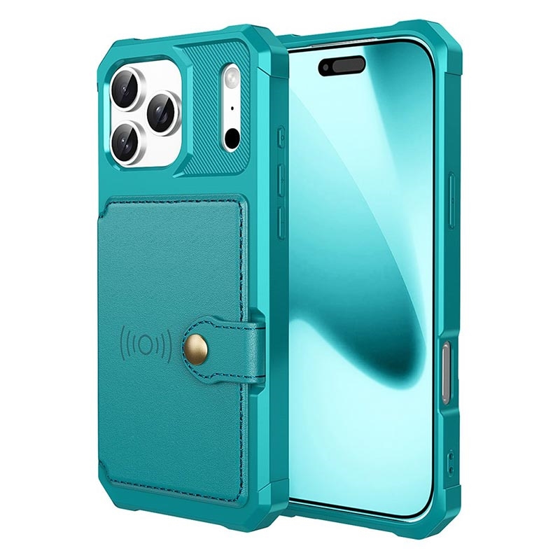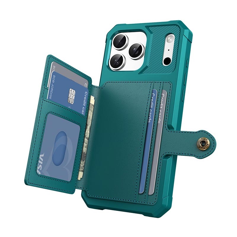 - L'étui portefeuille pour iPhone 17 Pro Max a une fermeture à bouton-pression sécurisée, un design de portefeuille et plusieurs fentes pour cartes avec une poche pour l'argent