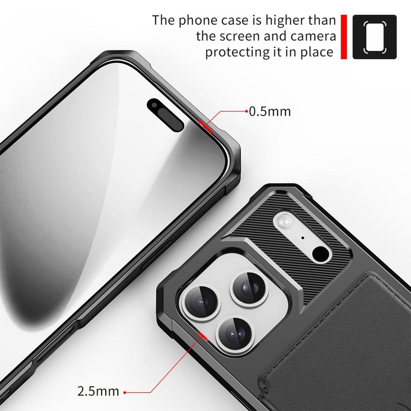 - L'étui portefeuille pour iPhone 17 Pro Max a une fermeture à bouton-pression sécurisée, un design de portefeuille et plusieurs fentes pour cartes avec une poche pour l'argent