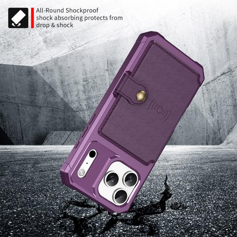 - L'étui portefeuille pour iPhone 17 Pro a une fermeture à bouton-pression sécurisée, un design de portefeuille et plusieurs fentes pour cartes avec une poche pour l'argent