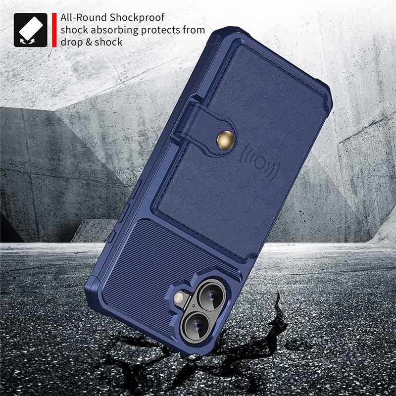 - L'étui portefeuille pour iPhone 17 a une fermeture à bouton-pression sécurisée, un design de portefeuille et plusieurs fentes pour cartes avec une poche pour l'argent