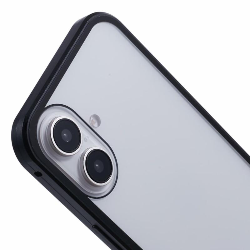 La conception en deux pièces offre une fixation facile et un verrouillage sécurisé grâce aux aimants et à la boucle. Le verre trempé intégré à l'avant protège l'écran des rayures et des impacts, le cadre métallique latéral des chocs et des chutes, tandis que le matériau composite mat protège l'arrière du iPhone 16 Plus.