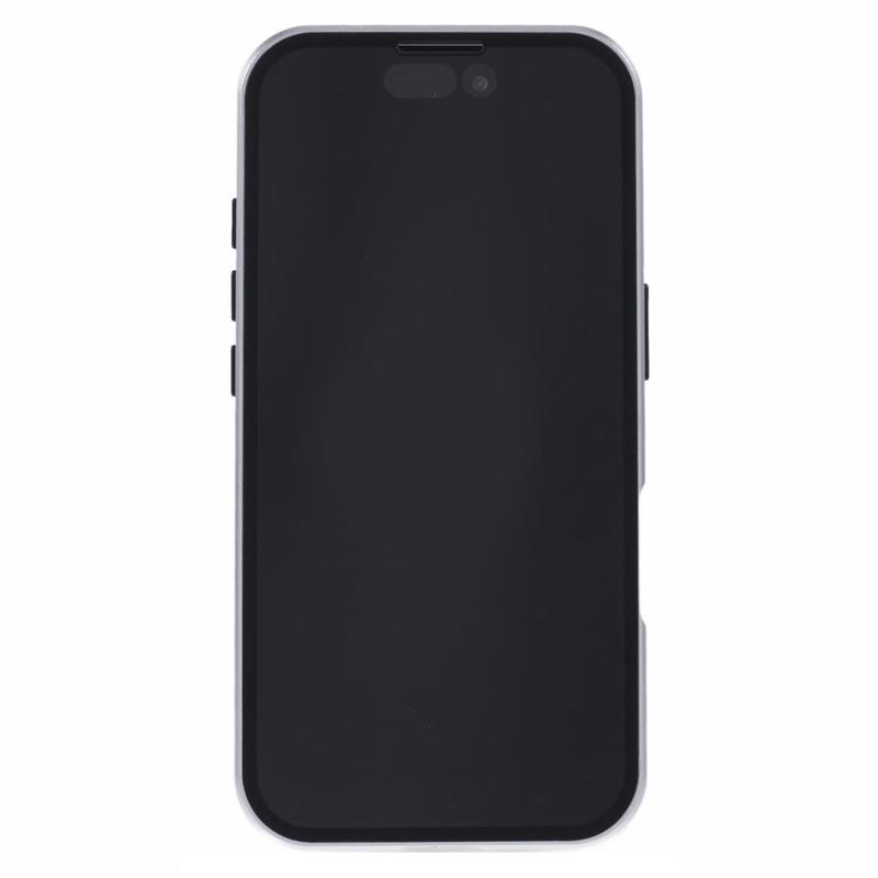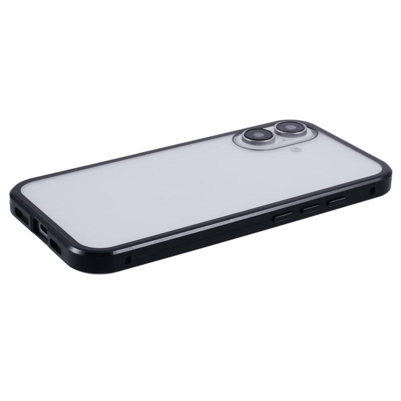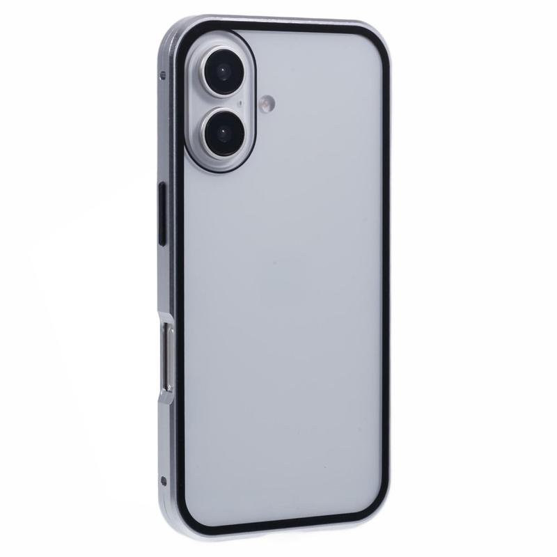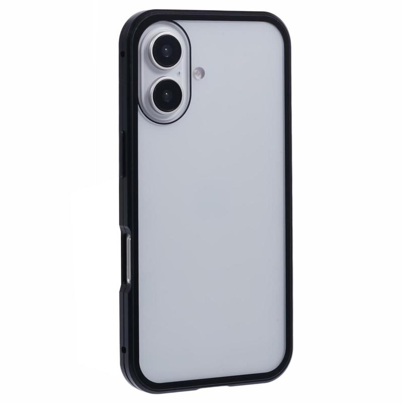 La conception en deux pièces offre une fixation facile et un verrouillage sécurisé grâce aux aimants et à la boucle. Le verre trempé intégré à l'avant protège l'écran des rayures et des impacts, le cadre métallique latéral des chocs et des chutes, tandis que le matériau composite mat protège l'arrière du iPhone 16.
