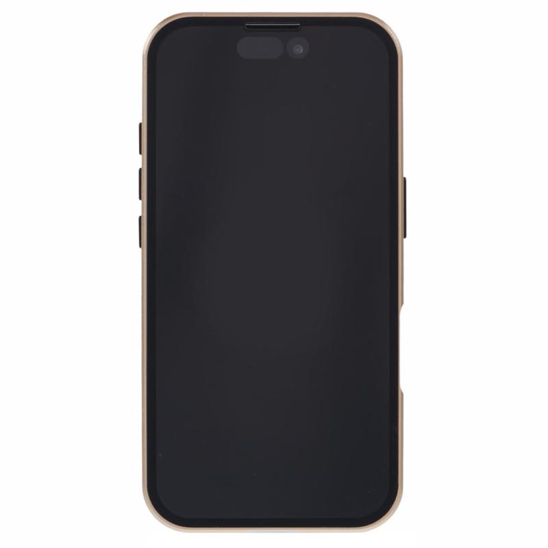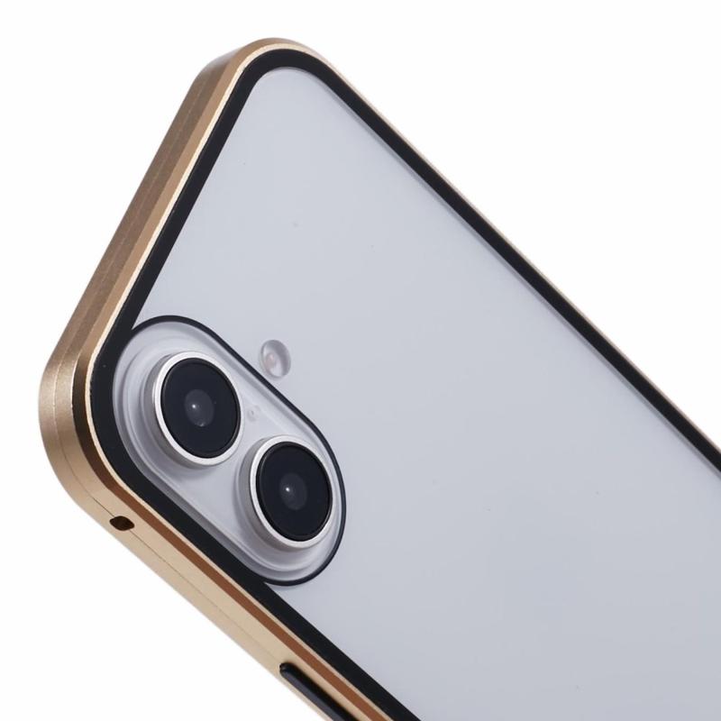 La conception en deux pièces offre une fixation facile et un verrouillage sécurisé grâce aux aimants et à la boucle. Le verre trempé intégré à l'avant protège l'écran des rayures et des impacts, le cadre métallique latéral des chocs et des chutes, tandis que le matériau composite mat protège l'arrière du iPhone 16.