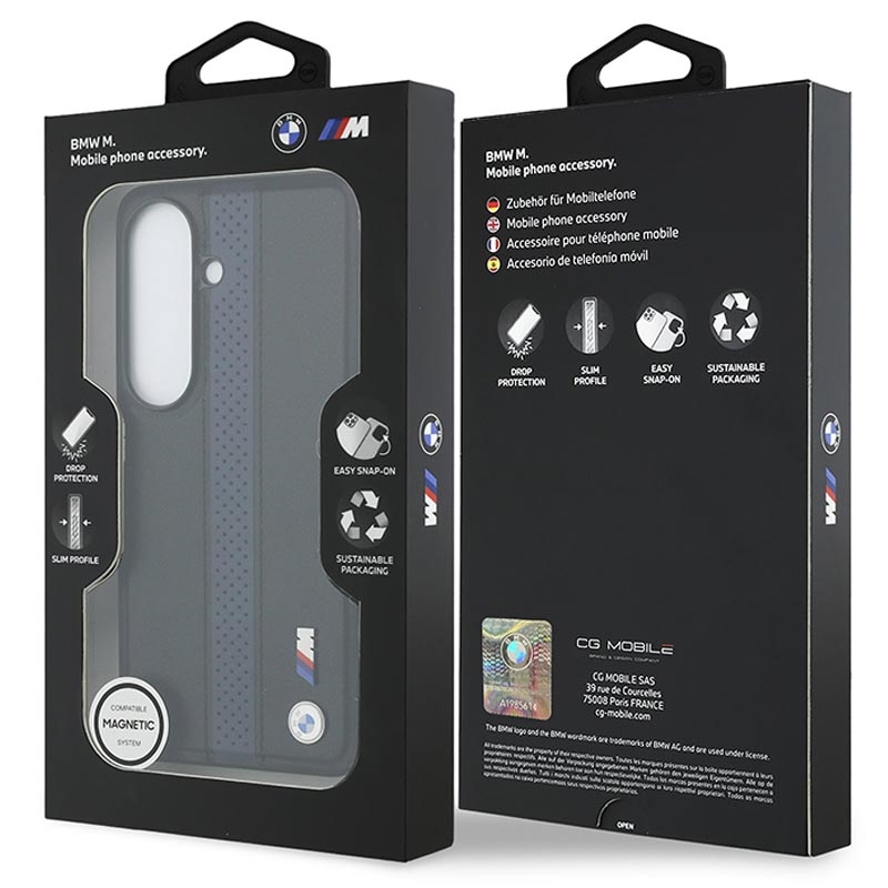 Coque magnétique BMW M Perforated Stripes and Metal Logo pour Samsung Galaxy S26 - Coque de protection magnétique en PU