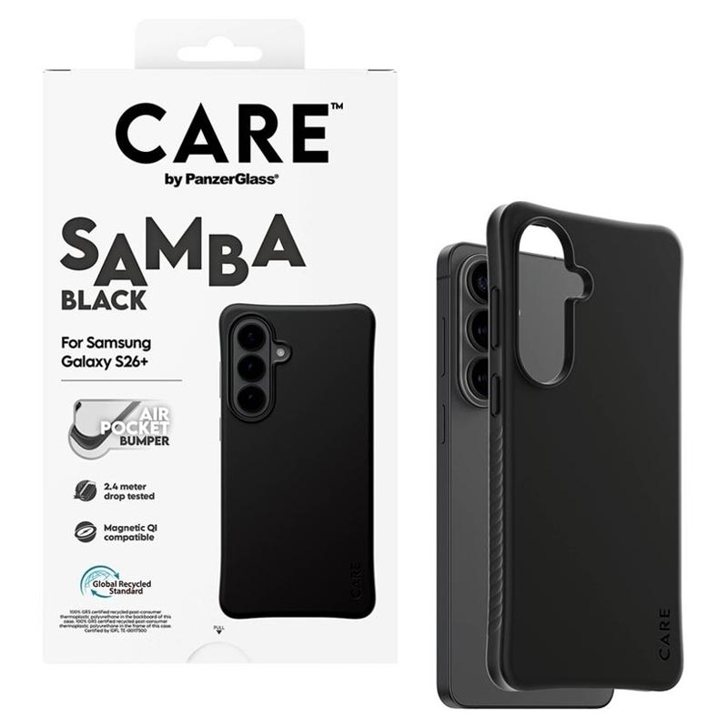 Offrez à votre Samsung Galaxy S26+ une mise à niveau élégante tout en le protégeant jour après jour. La coque CARE by PanzerGlass Qi Samba est fabriquée à partir de TPU 100 % recyclé et conçue pour résister aux chocs, aux chutes et aux rayures quotidiens sans sacrifier le confort. La protection renforcée des coins aide à absorber les chocs, tandis que la finition lisse offre une excellente prise en main et permet de tenir plus facilement le Samsung Galaxy S26+.