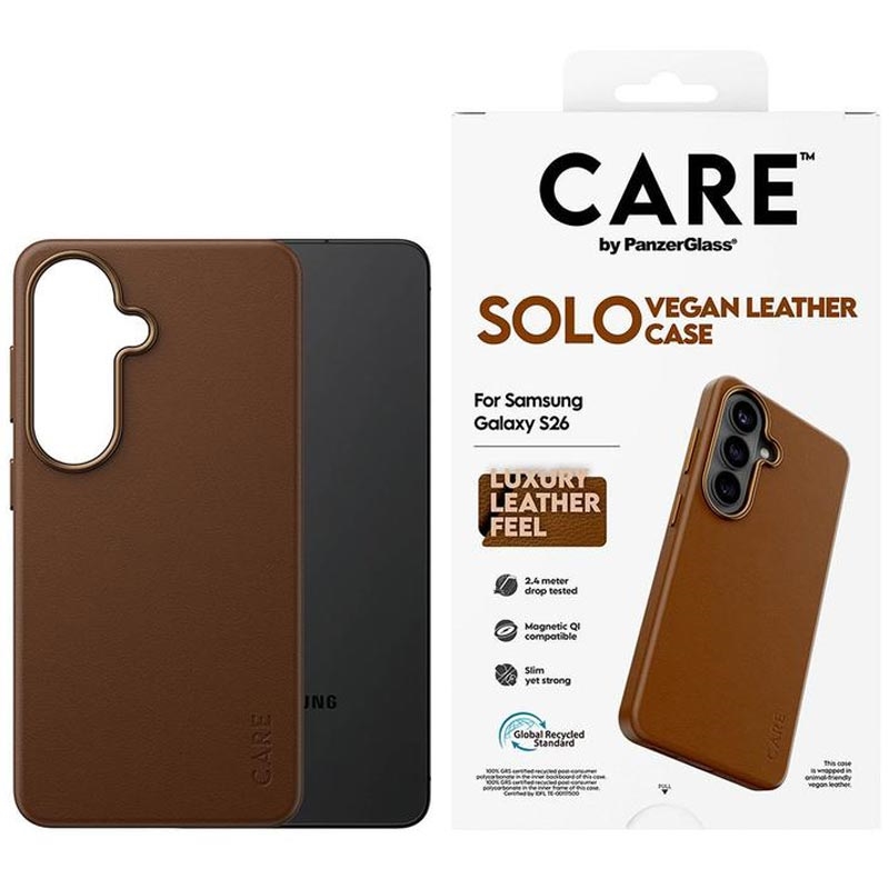 Coque magnétique Care by PanzerGlass Solo pour Samsung Galaxy S26 - Finition PU, testé pour des chutes de 2,4 m, compatible avec les accessoires magnétiques, protection améliorée de l'appareil photo