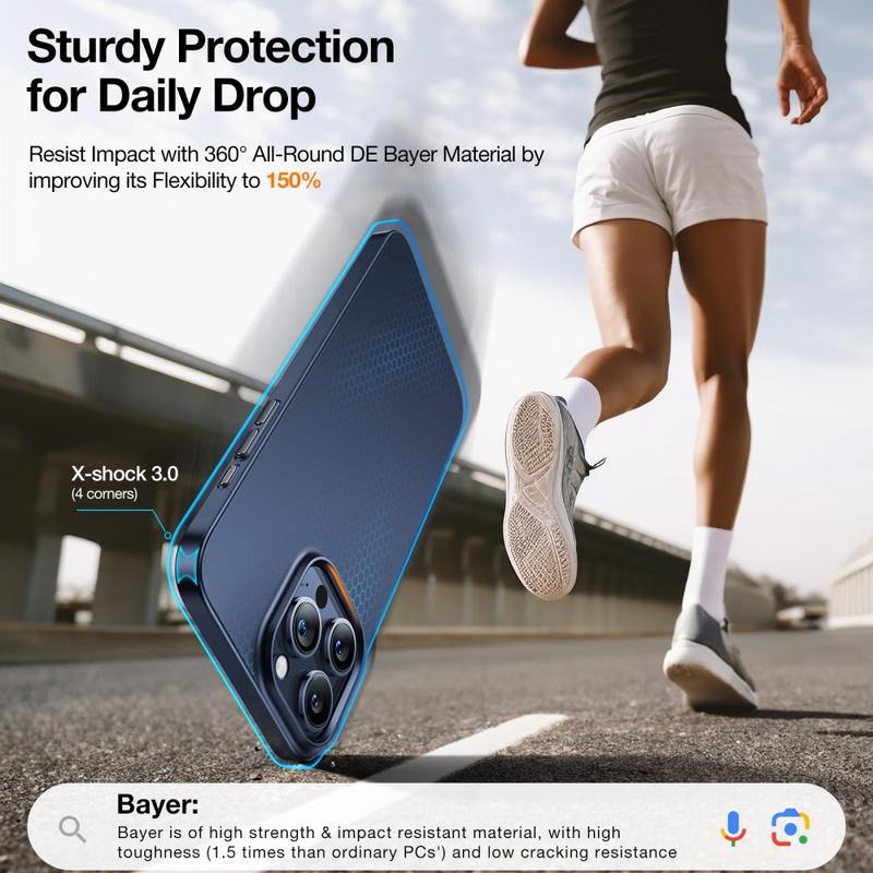 - Coque en PC de qualité militaire : le polycarbonate de première qualité résiste aux rayures, aux éraflures et aux chutes à hauteur de torse sans jaunir avec le temps.