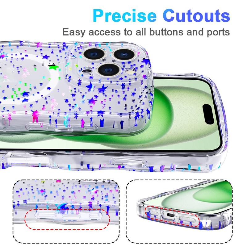 • Coque MagSafe en TPU Wave-Edge Laser Glitter pour iPhone 16 Pro Max