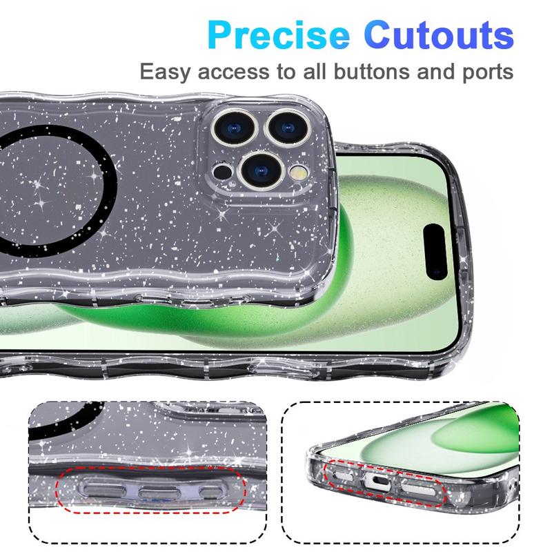 Coque MagSafe en TPU Wave-Edge Laser Glitter pour iPhone 16 Pro Max