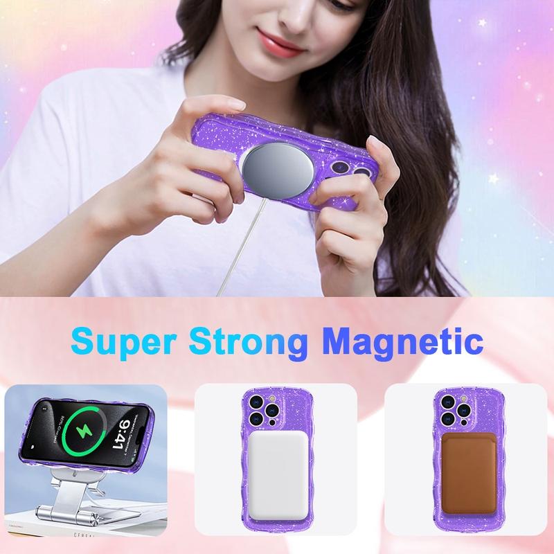 Coque MagSafe en TPU Wave-Edge Laser Glitter pour iPhone 16 Pro Max