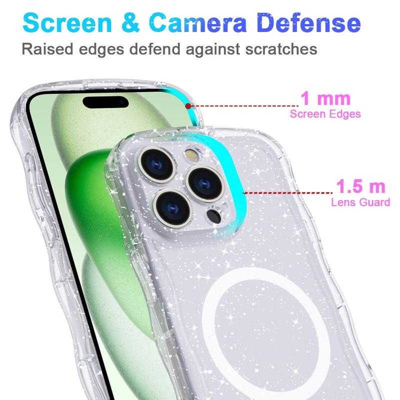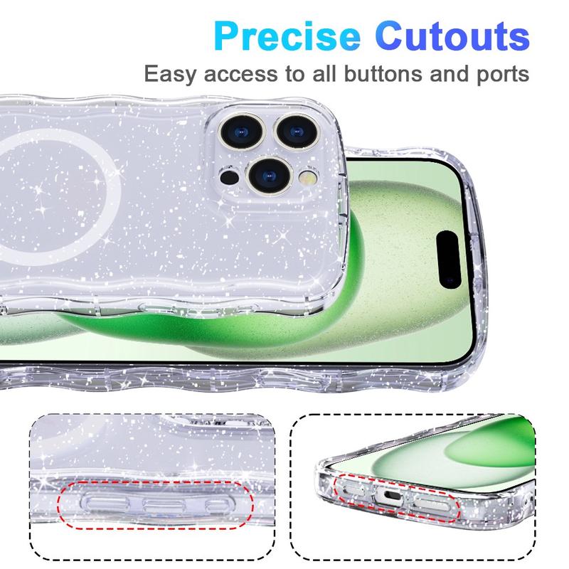 Coque MagSafe en TPU Wave-Edge Laser Glitter pour iPhone 16 Pro