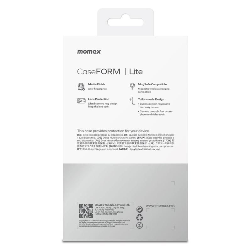 Améliorez votre iPhone 17 Pro Max avec l'étui magnétique MTAP25 de MOMAX, un mélange parfait de design fin, de protection quotidienne et de commodité MagSafe. Avec sa finition mate semi-transparente et son profil ultra-mince, cette coque met en valeur la beauté de votre appareil tout en le protégeant des rayures et des chocs mineurs. Idéal pour ceux qui souhaitent une protection légère sans compromis sur la fonctionnalité ou le style.