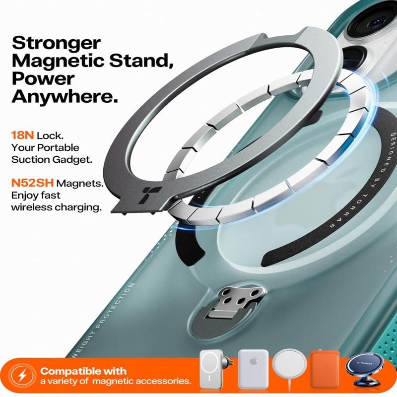 Coque MagSafe Torras Ostand Q3 Air pour iPhone 17 - Béquille 360, protection AirMAX Airbag, prise magnétique forte