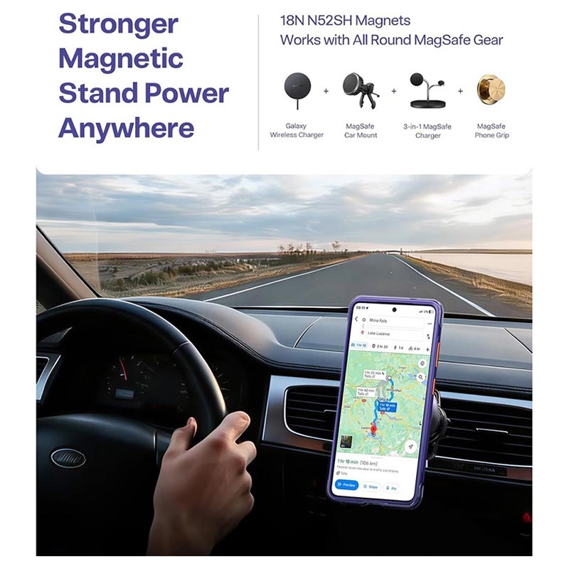 Doté de la technologie Halbach Array et d'aimants néodyme N52SH de première qualité, l'étui offre une force magnétique jusqu'à 200 % plus élevée. Cela garantit une fixation et un chargement fiables avec tous les accessoires MagSafe.