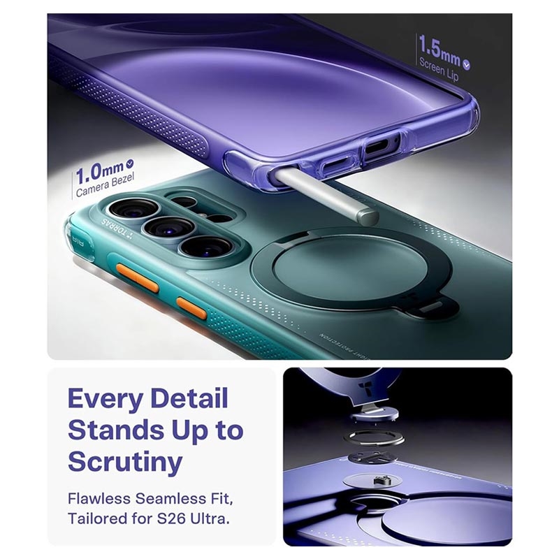 L'étui Torras Ostand Q3 Air MagSafe Case pour Samsung Galaxy S26 Ultra allie esthétique moderne et protection avancée. Fabriquée à partir de matériaux TPU et PC de haute qualité, elle présente un profil fin et élégant tout en offrant une prise en main sûre et confortable.
