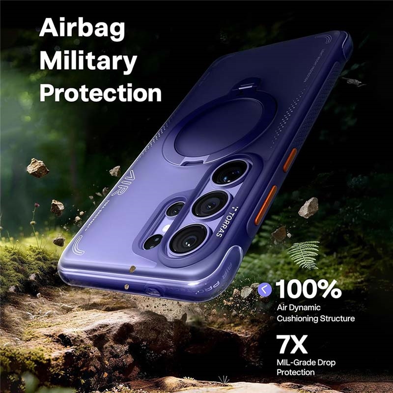 Coque MagSafe Torras Ostand Q3 Air pour Samsung Galaxy S26 Ultra - Béquille 360, protection AirMAX Airbag, prise magnétique forte