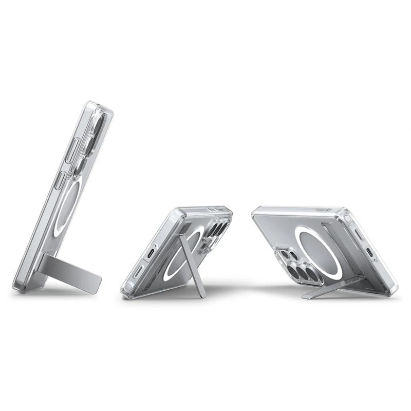 - Caractéristiques : Aimants MagSafe, design hybride, béquille intégrée, bords surélevés, profil mince