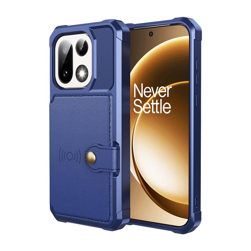 - L'étui portefeuille pour OnePlus 15 a une fermeture à bouton-pression sécurisée, un design de portefeuille et plusieurs fentes pour cartes avec une poche pour l'argent