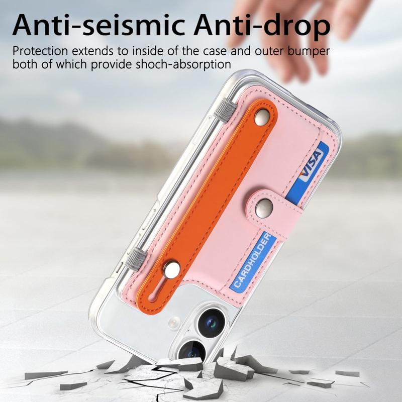 Cet étui allie fonctionnalité, style et protection, en offrant la commodité d'un porte-cartes, d'un support et d'un bracelet tout en un. C'est un excellent choix pour ceux qui veulent un étui polyvalent et multifonctionnel pour iPhone 16 Plus.