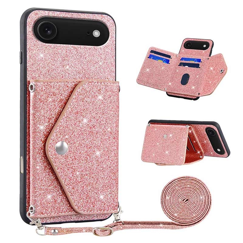La coque de qualité supérieure de la série Stardust est le bon choix pour protéger votre iPhone Air de tout dommage potentiel. Il a un porte-cartes à l'arrière avec un bouton pression qui est idéal pour ranger vos cartes essentielles et les garder en sécurité. Une surface scintillante brillante ajoute une touche de glamour à votre téléphone. De plus, la coque est livrée avec une bandoulière de 150 cm, vous permettant de transporter votre iPhone Air partout où vous allez.