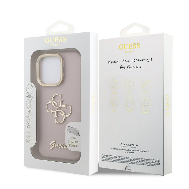 Coque pour cadre de caméra iPhone 16 Pro Max avec support Guess Grained 4G Logo - Rose