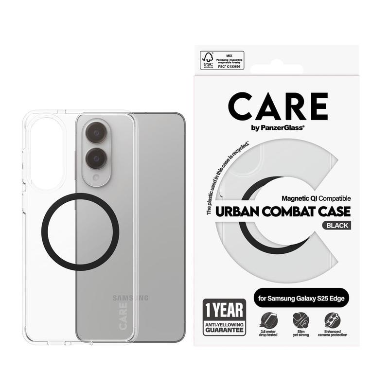 Care by PanzerGlass Coque Transparent Urban Combat pour Samsung Galaxy S25 Edge - Compatible MagSafe