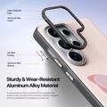 Le cadre de protection de l'appareil photo et les boutons latéraux sont fabriqués en alliage d'aluminium, usinés avec précision par commande numérique et finis par sablage fin. Cela garantit une couleur durable, une durabilité et une sensation de qualité supérieure, rehaussée par des détails subtils gravés au laser.
