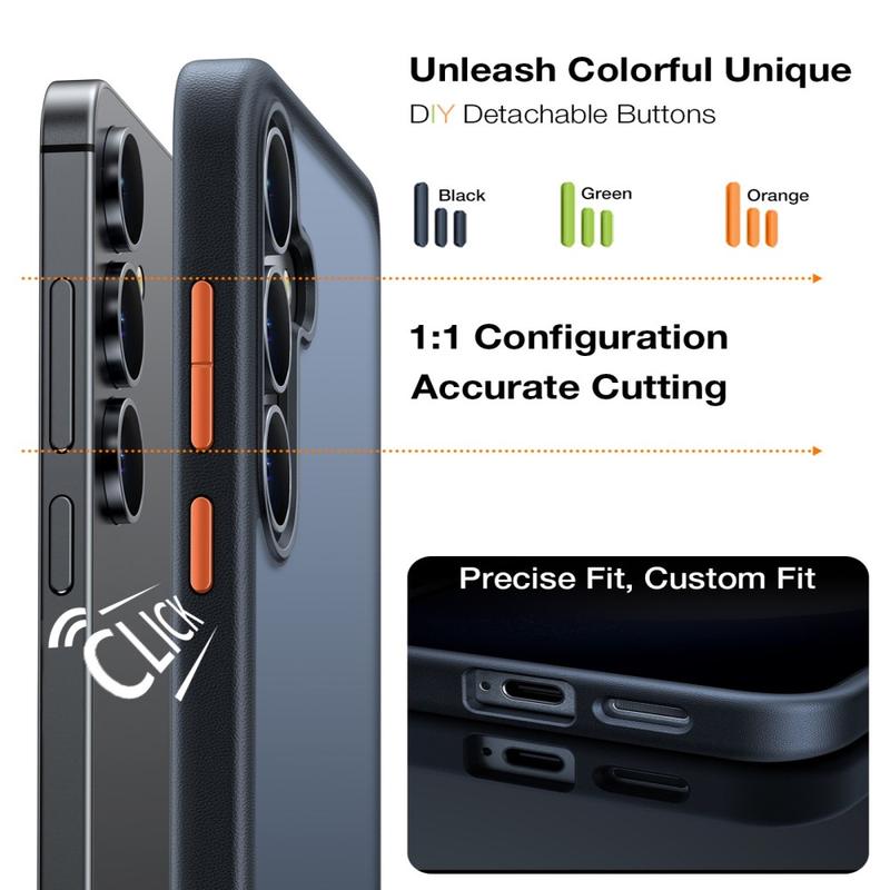 L'étui comprend trois jeux de boutons interchangeables, ce qui vous permet de personnaliser le look de votre Samsung Galaxy S26+. Changez facilement les boutons pour les assortir à votre style, votre tenue ou votre humeur et créez une apparence unique et personnalisée.