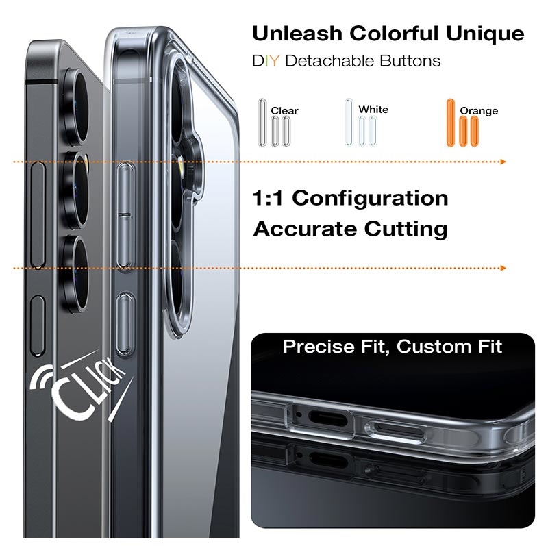 La coque inclut trois jeux de boutons interchangeables, vous permettant de personnaliser l'apparence de votre Samsung Galaxy S26. Changez facilement de boutons selon votre style, votre tenue ou votre humeur et créez un look unique et personnalisé.
