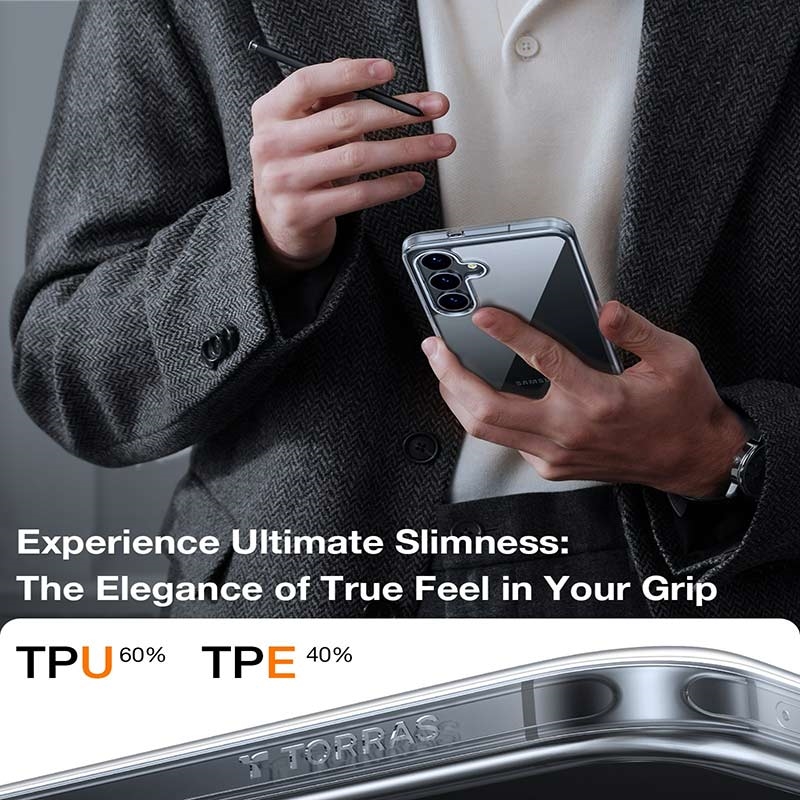 La coque Torras Skin-Touch est conçue pour les utilisateurs recherchant une esthétique raffinée alliée à une protection fiable au quotidien. Fabriquée à partir d'un mélange de PC rigide et de TPU flexible, elle offre une grande durabilité tout en conservant un profil fin et un toucher doux et agréable.